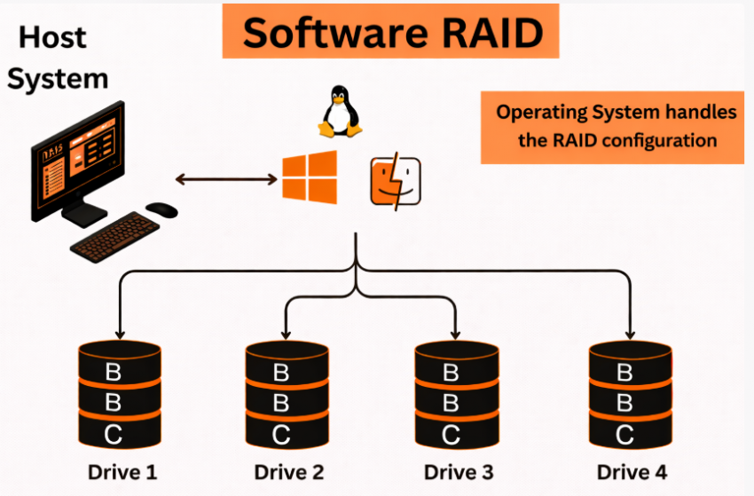 Software RAID is particularly well-suited for dedicated servers and bare-metal infrastructure, where the operating system has full control over disks.